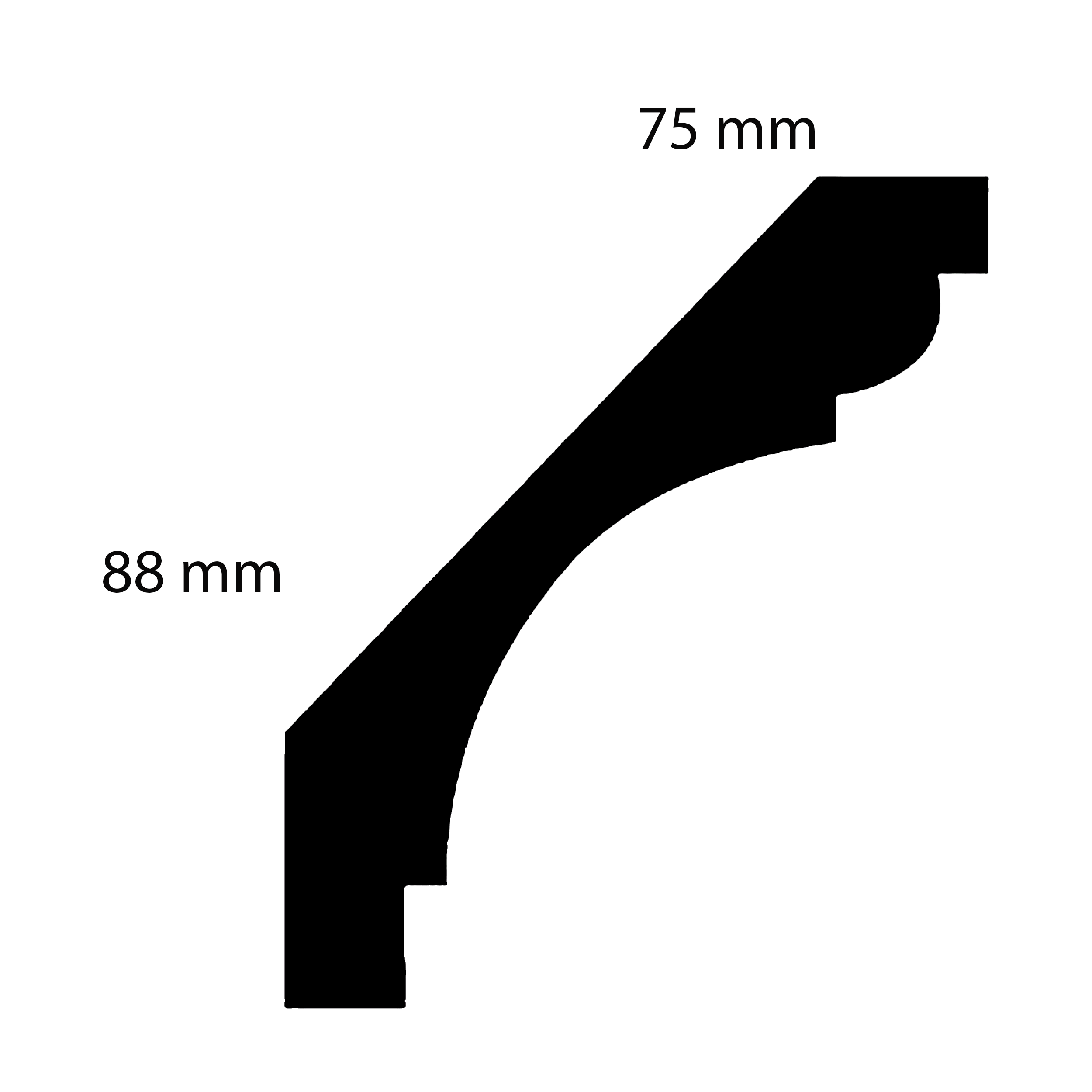 - TAMAÑO: La moldura de yeso, de 75 x 88 x 1200 mm, crea una transición limpia entre el techo y la pared.