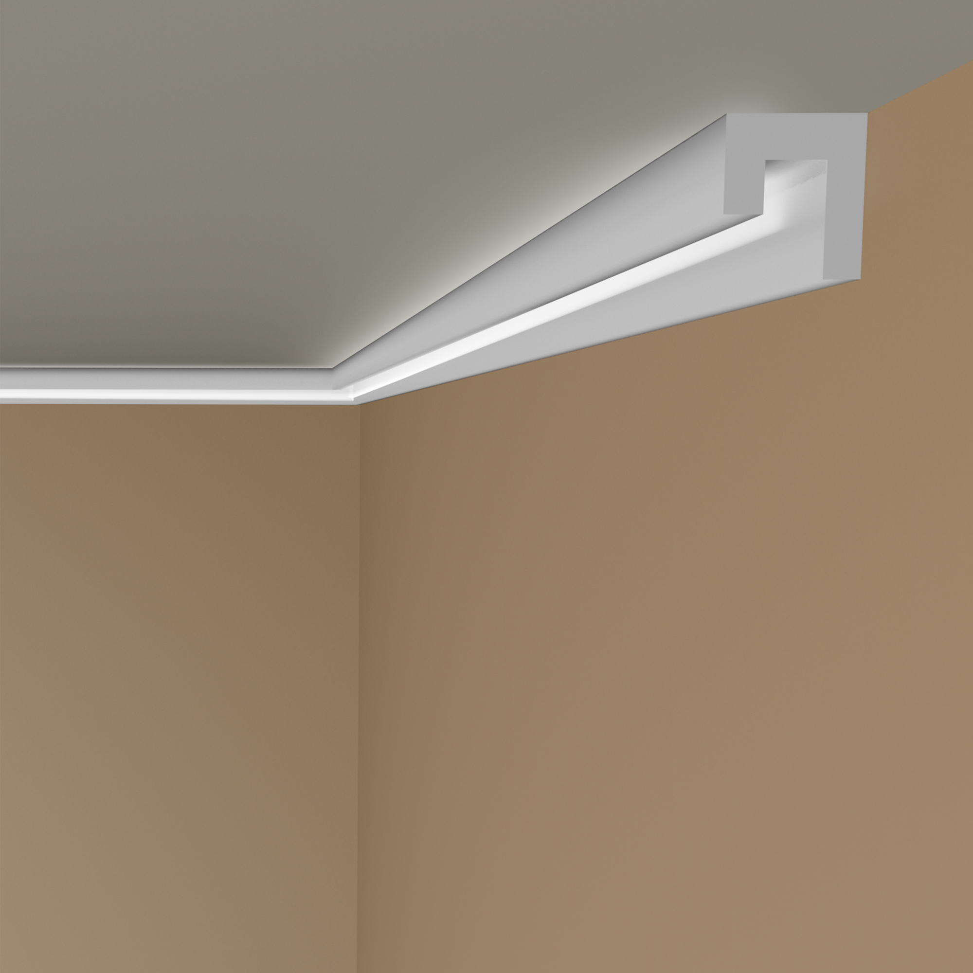 ILUMINACIÓN INDIRECTA: La cornisa de yeso es ideal para integrar tiras LED, creando así una moderna tira de luz.