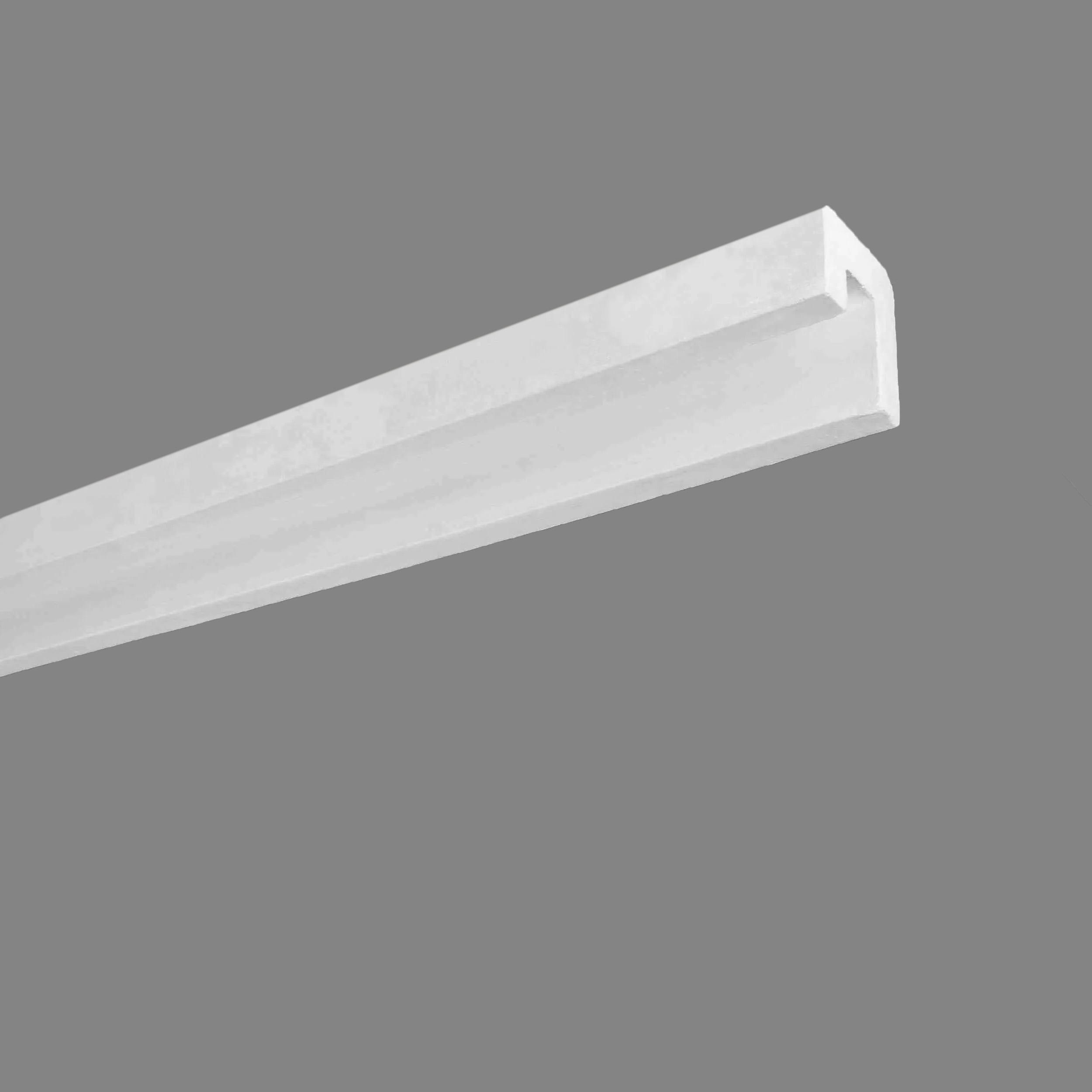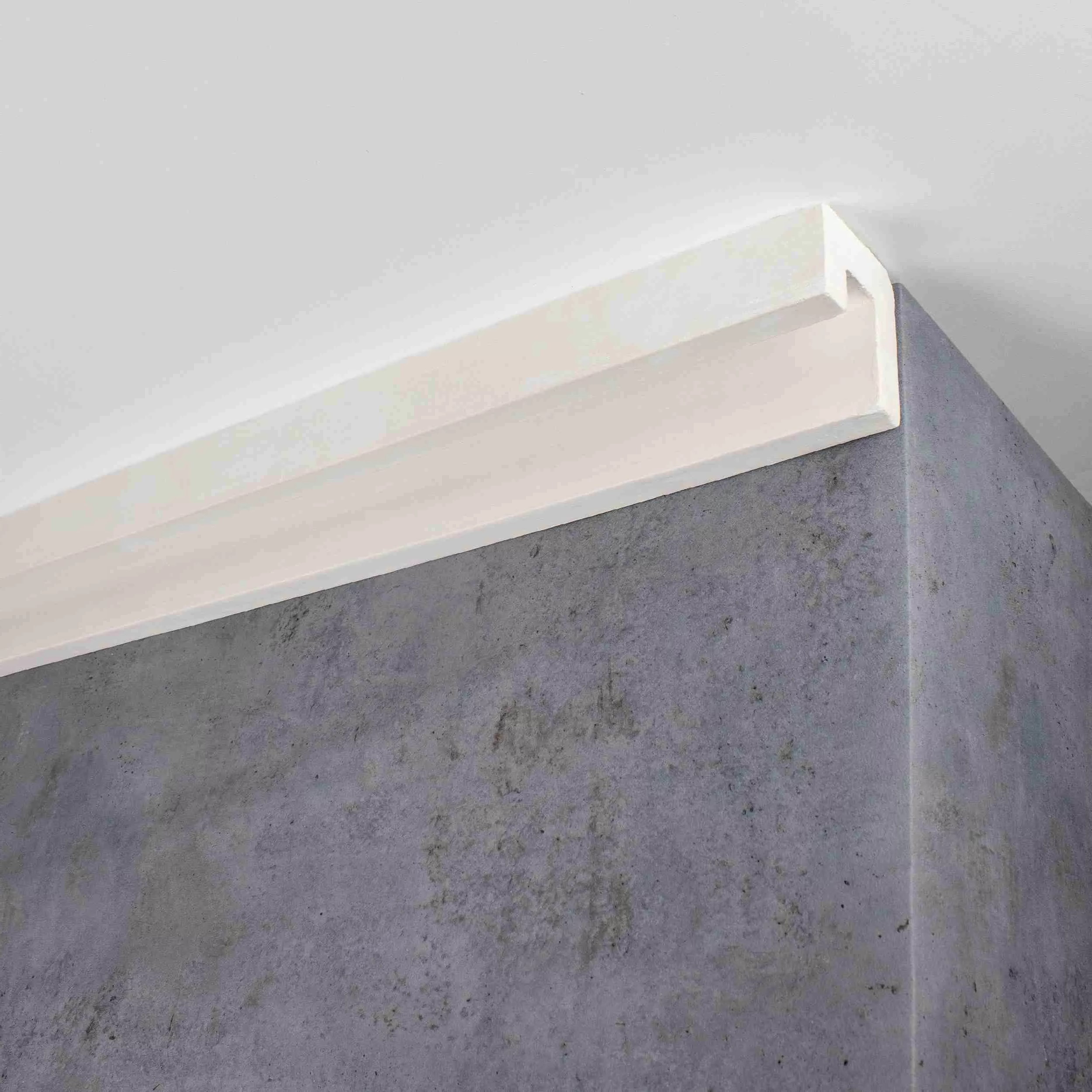 El yeso auténtico sigue siendo uno de los elementos de diseño más populares en interiorismo. Este material natural permite crear todo tipo de elementos estucados, desde estilos clásicos hasta modernos. Además, tiene un impacto positivo en el clima interior. Esta moderna cornisa de yeso impresiona por su diseño atemporal y sus elegantes contornos. Aporta un toque especial a cualquier estancia. Encuentre los accesorios de montaje a juego en la pestaña "Accesorios".