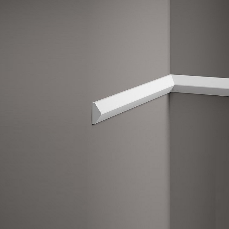 Esta moldura de cornisa es una moldura de techo moderna y de diseño sencillo que puede instalar en cualquier habitación. Su perfil atemporal y discreto no resulta intrusivo y se integra armoniosamente en cualquier interior.