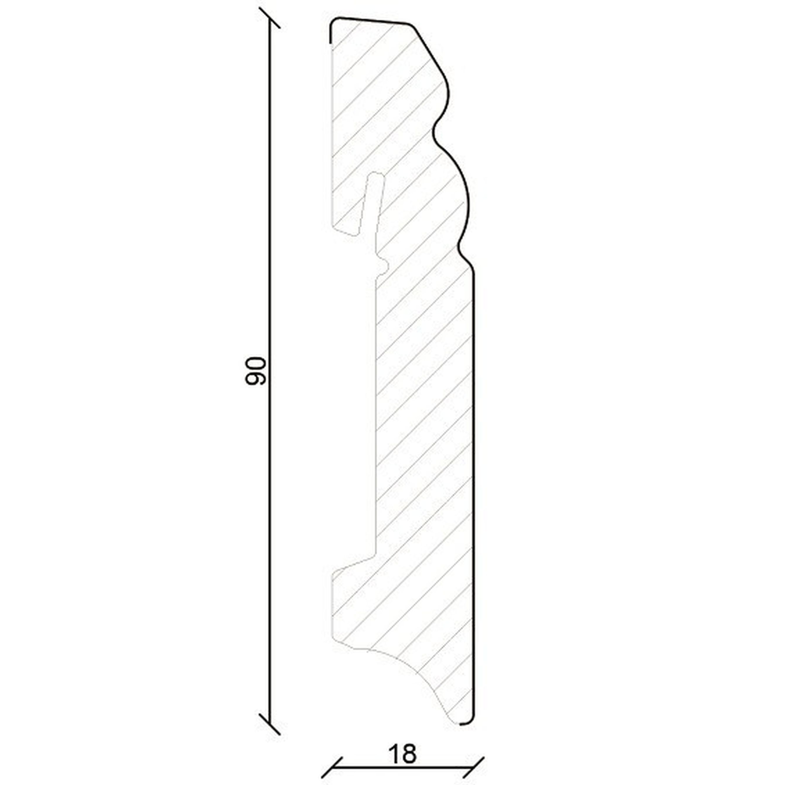 Rodapié blanco PROVISTON, perfil Hamburgo, 18 x 90 x 2400 mm, tablero de MDF laminado.