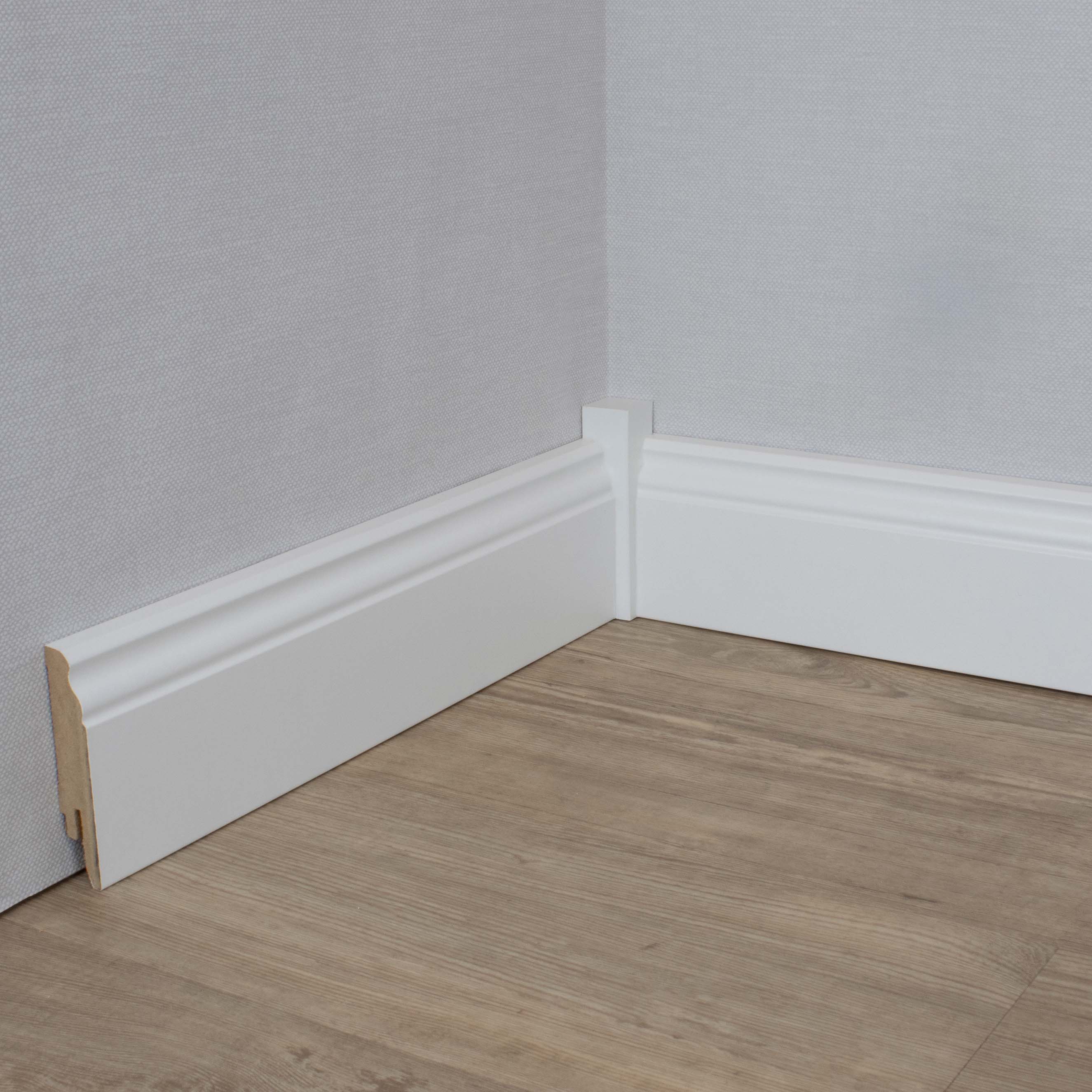 - APLICACIÓN: El rodapié es ideal para usar en casi cualquier espacio habitable. Complementa muchos revestimientos de suelo, incluyendo madera, baldosas, vinilo, laminado, moqueta y más. Nota: El rodapié no es apto para habitaciones húmedas.