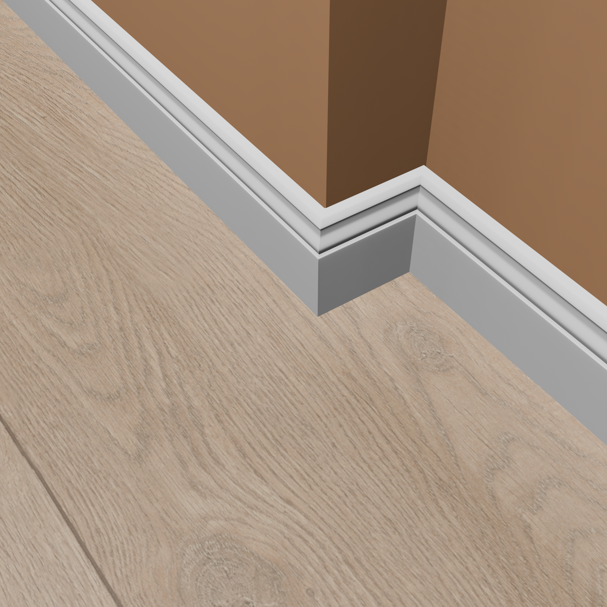 Consejo para ángulos y esquinas: Evítese la molestia de cortar ingletes para las esquinas. Ofrecemos ángulos precortados para muchos de nuestros zócalos. Recibirá Una pieza de esquina interior o exterior que solo necesita cortar por la mitad. En todos los demás casos, puede usar cantoneras de madera universales de diferentes grosores para un acabado perfecto. Consulte la pestaña "Accesorios" para obtener más información.