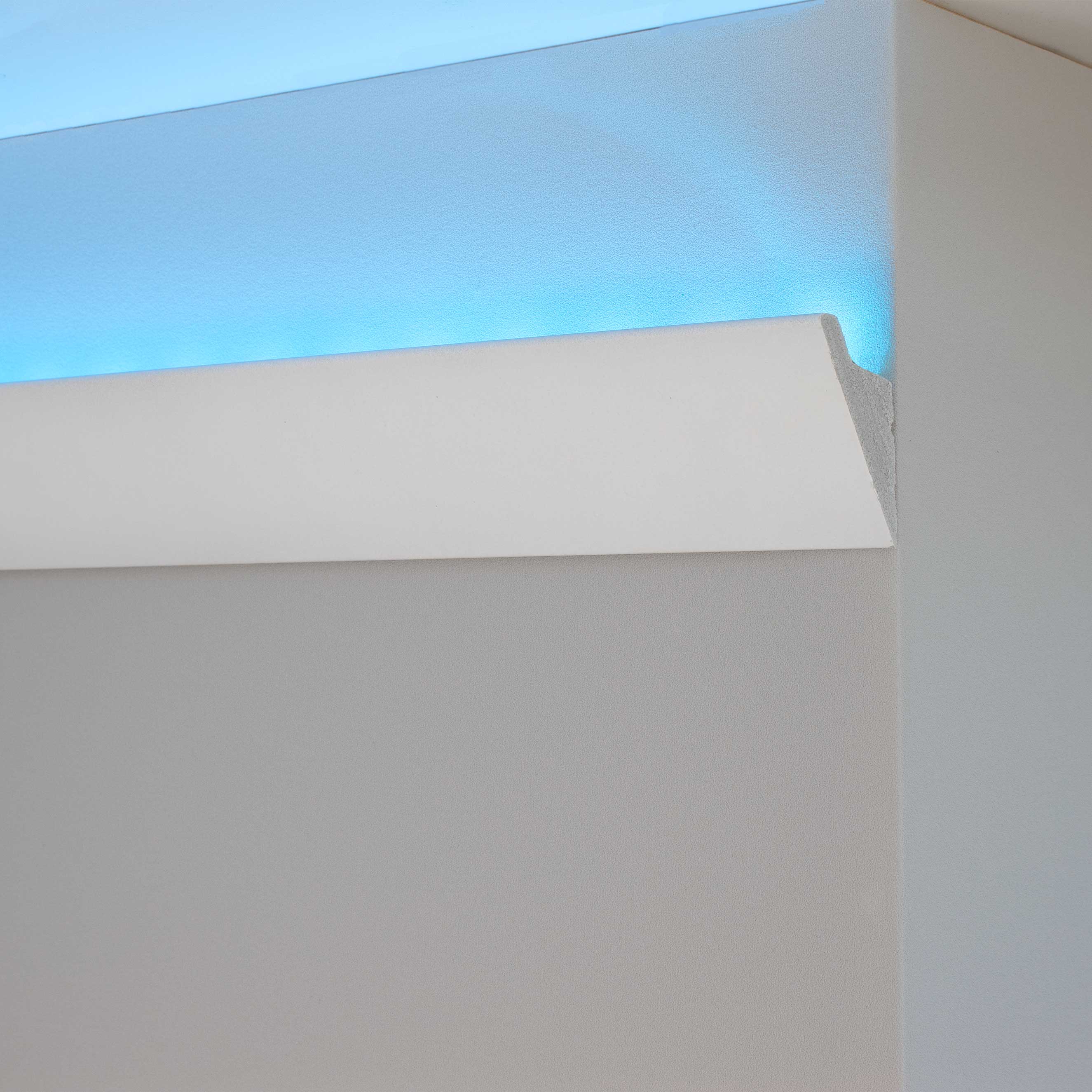 Las tiras de luz ofrecen muchas posibilidades creativas para realzar sus habitaciones con iluminación indirecta. Las molduras LED para cornisas crean puntos de luz y garantizan un ambiente agradable y acogedor. Puede instalarlas en la sala de estar o el dormitorio, pero también resultan muy atractivas en el pasillo, la cocina o el baño.