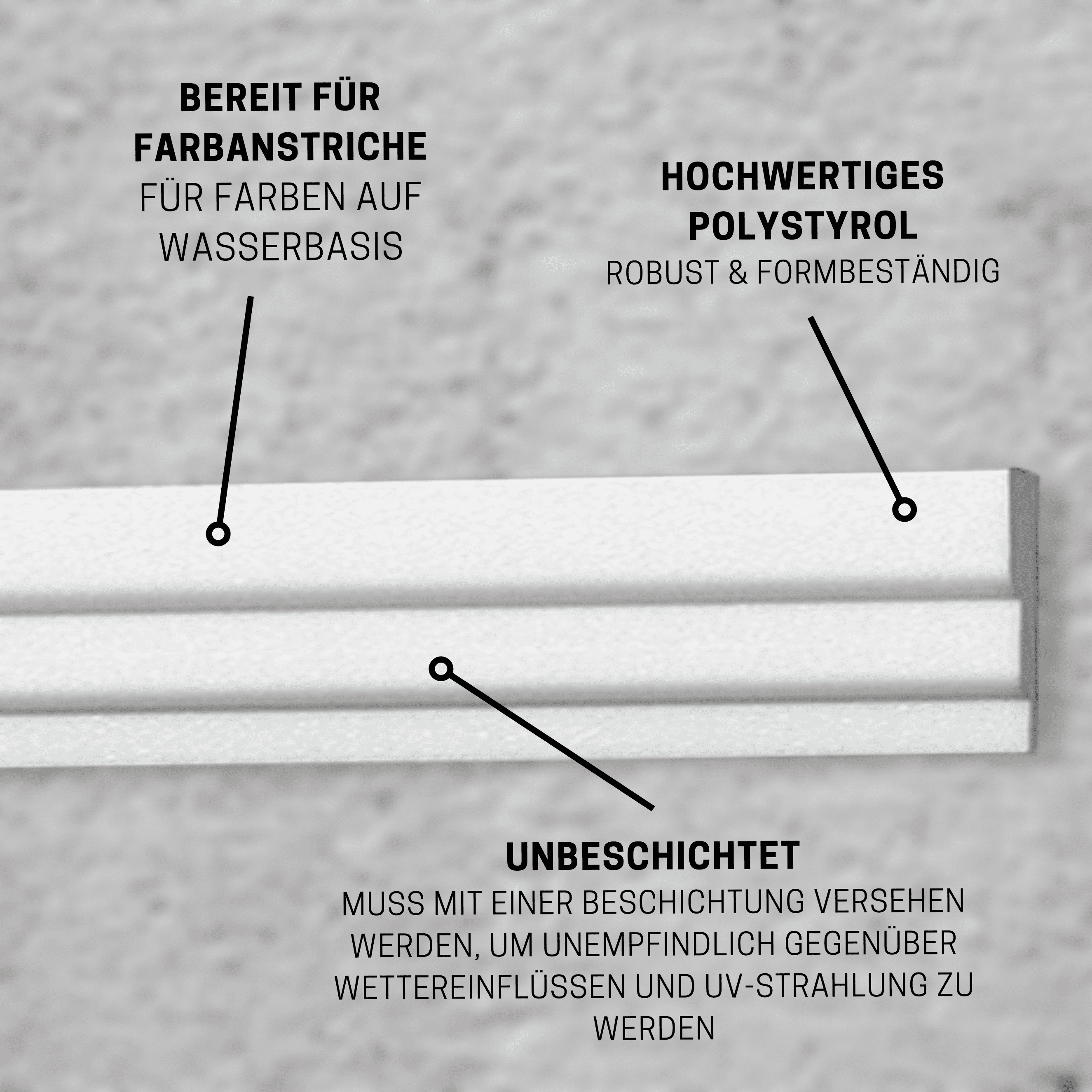 - MATERIAL DE ALTA CALIDAD: El perfil de fachada de 76 x 74 x 2000 mm está fabricado en poliestireno. El material es ligero, robusto y dimensionalmente estable.