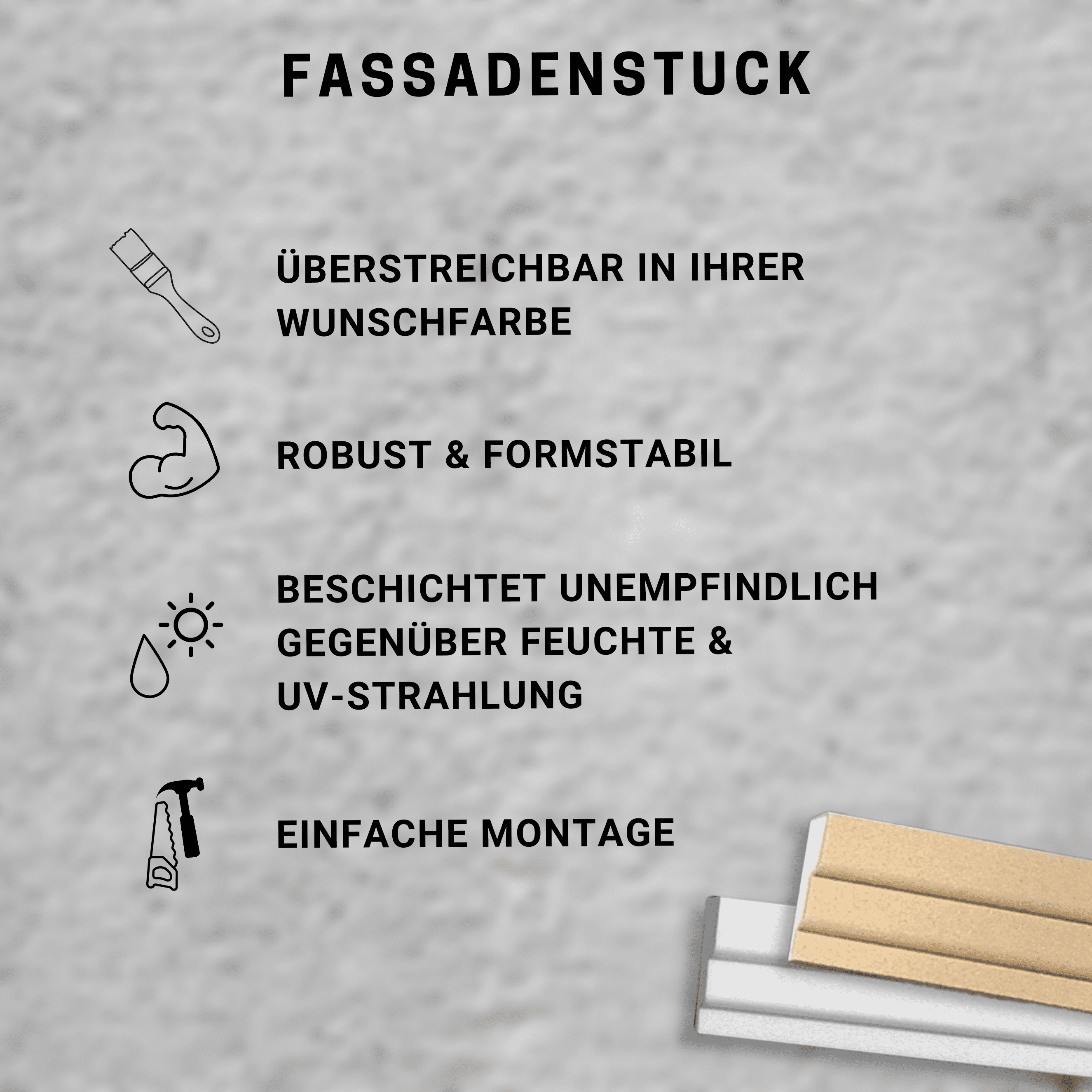 - MATERIAL DE ALTA CALIDAD: El perfil de fachada de 25 x 100 x 2000 mm está fabricado en poliestireno. El material es ligero, robusto y dimensionalmente estable.